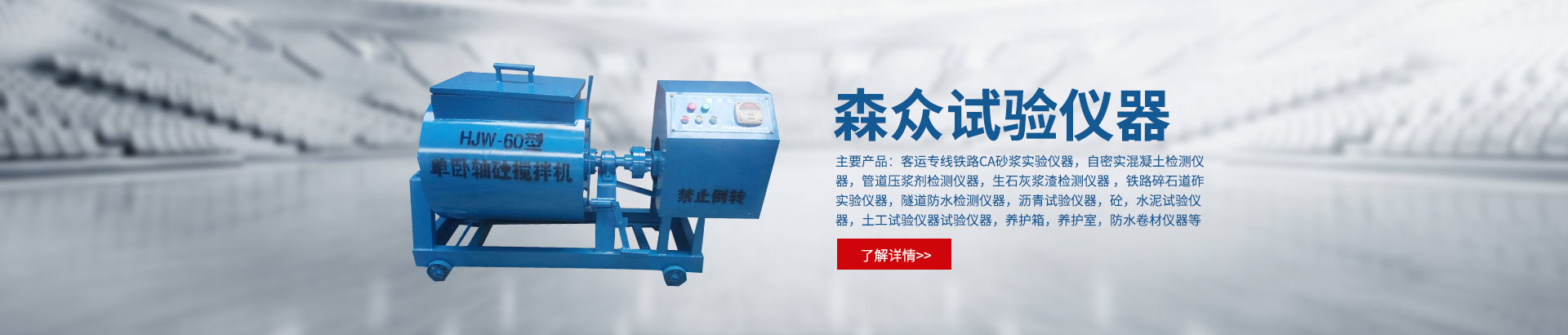 滄州森眾試驗(yàn)儀器有限公司是目前國內(nèi)生產(chǎn)公路試驗(yàn)儀器、建筑試驗(yàn)儀器的重點(diǎn)骨干企業(yè)。在國內(nèi)具有較高的度,檢測手段完善,技術(shù)力量雄厚。產(chǎn)品嚴(yán)格按照,國家標(biāo)準(zhǔn)設(shè)計生產(chǎn),多次在國家重點(diǎn)工程中標(biāo)。除配套供應(yīng)試驗(yàn)儀器設(shè)備外,我公司還承擔(dān)新建試驗(yàn)室的規(guī)劃設(shè)計,設(shè)備選型,安裝調(diào)試,配件供應(yīng)與后勤保障等業(yè)務(wù)。主要產(chǎn)品:客運(yùn)專線鐵路CA砂漿實(shí)驗(yàn)儀器,自密實(shí)混凝土檢測儀器,管道壓漿劑檢測儀器,生石灰漿渣檢測儀器,鐵路碎石...